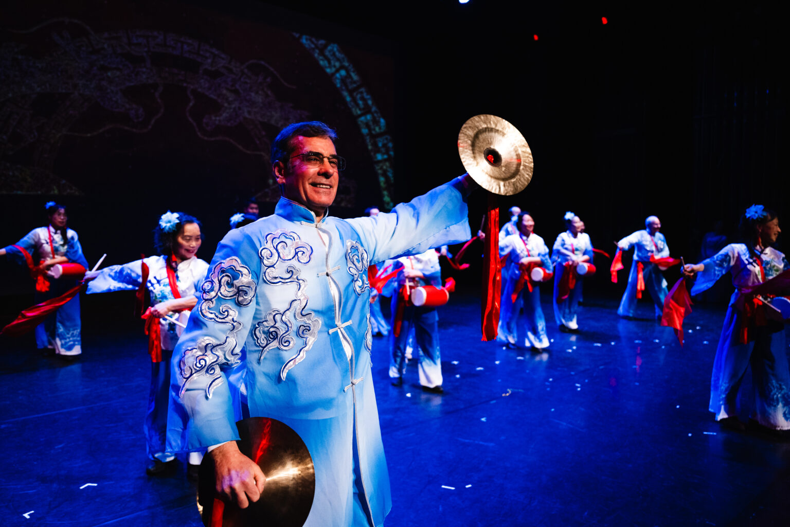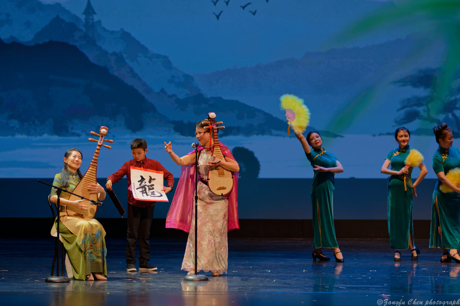 春晚精彩继续,全才音乐人刘瀚博先生和中华文化中心艺术团同台演出耳熟能详的歌曲“传奇”。The excitement continues at the Spring Festival Gala, as the versatile musician Mr. Liu Hanbo performs the well-known song “Legend” alongside the artists from the Chinese Cultural Center Art Group.