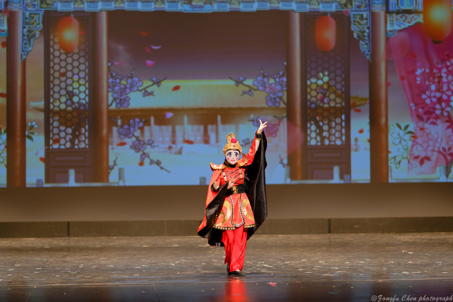 接下来中华国粹川剧变脸的演绎将晚会再次带入高潮。登场的李雪女士专程从中国赶来,是中国绝无仅有的女变脸传承人,曾登上1998年的中央电视台春节晚会,她的表演足迹遍及20多个国家,为多位外国领导人包括前美国总统奥巴马夫妇表演过。Next, the performance of Sichuan Opera’s face-changing, a quintessential Chinese art form, once again brought the gala to its climax. Ms. Li Xue, who had traveled from China specially for the event, is the matchless female inheritor of the art of face-changing. She had appeared on the CCTV Spring Festival Gala in 1998 and had performed in over 20 countries, entertaining numerous foreign leaders including former US President Barack Obama and his wife.
